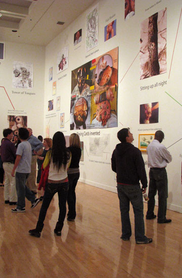 was a traveling exhibition that humorously and critically interrogates this debated contemporary philosophy. The exhibition began with a core element that employed historical and contemporary graphic images to visually introduce the Intelligent Design theory/theme. Presenting institutions collaborate with participating artists and co-curator(s) Michael Zansky and D. Dominick Lombardi who combined their work with other artists who illuminate and/or question the premises of Intelligent Design."