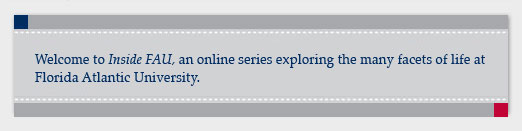 glad that you’ve decided to visit Inside FAU, where you’ll find a variety of informative videos about the University. Webisodes are posted on this site periodically, with a view toward informing the FAU community about interesting new programs, special accomplishments by faculty and students, and other notable developments.