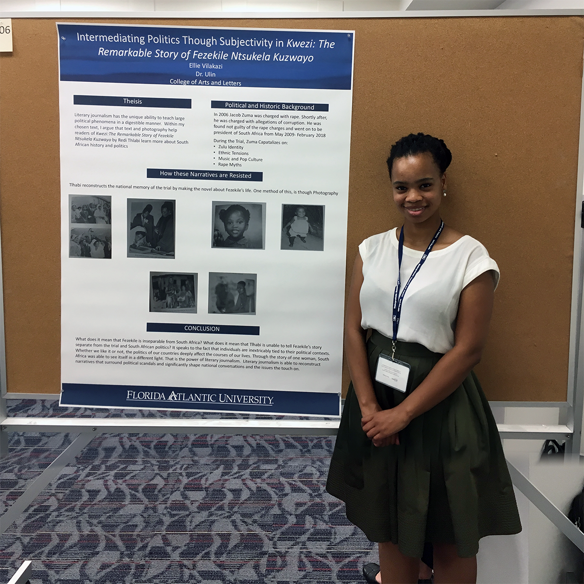 Title: "Intermediating Politics through Subjectivity in Khwezi: The Remarkable Story of Fezekile Ntsukela Kuzwayo." Ninth Annual Undergraduate Research Symposium, Florida Atlantic University. April 8, 2019.