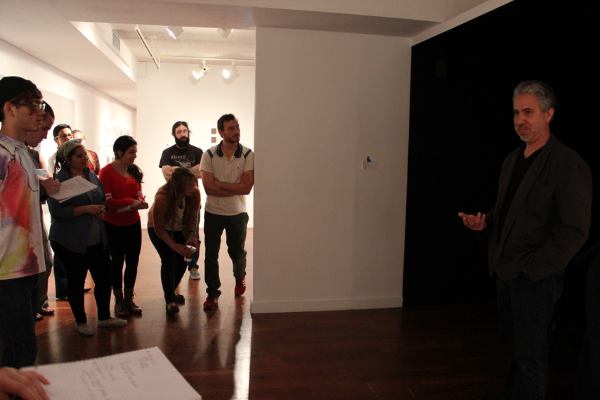 Image: Ernesto Gomez presenting and discussing his work at the Ritter Art Gallery.