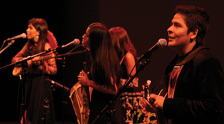 (clockwise from top left) Guayasamín's Rigoberta Menchú, 1994; Guayasamin's Quito de la Nube Negra (Quito of the black Cloud), 1988; Kuyayky (Ecuadorian Family Band) Concert Image.