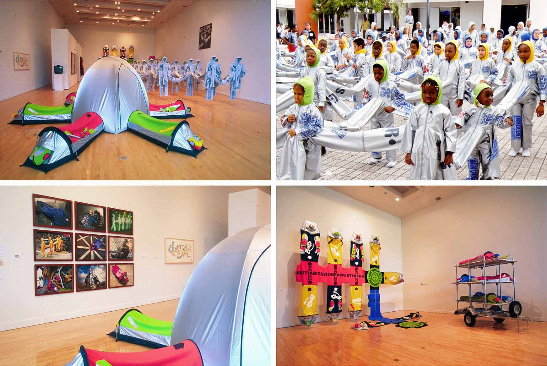 The exhibition was organized by the Contemporary Art Museum, University of South Florida. Lucy Orta's sculpture combines fashion design, architecture and a social agenda. The artist orchestrates events to create literal and metaphoric human connections. Cross disciplinary workshops that involve marginalized, at-risk or underserved community populations are integral to these interventions/events. On the occassion of the exhibition at FAU the University Galleries organized workshops with the artist and produced a public performance engaging children from Palm Beach and Miami Counties.