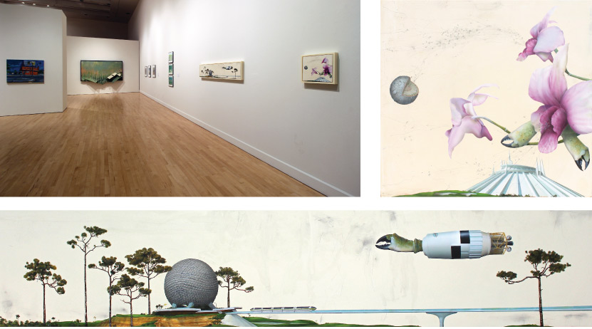 Images: (clockwise from top left) Installation view of Florida Dreaming in the Schmidt Center Gallery, 2016.