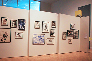 This exhibition presents Raymond Pettibon’s early graphic works from the California punk rock era. Featured are over 200 examples of Pettibon’s aggressively powerful designs created for the band Black Flag(whose lead vocalist was Henry Rollins) and other wellknown punk bands such as Sonic Youth, Hüsker Dü, Circle Jerks and the Dead Kennedys. In the past twenty years, Pettibon has developed an international reputation as a leading contemporary artist who offers piercing commentary on diverse aspects of American culture through his characteristic comic book style. This multi-media exhibition includes posters, gig fliers, zines, album covers along with their albums, T-shirts, skateboard decks, CDs and videos.