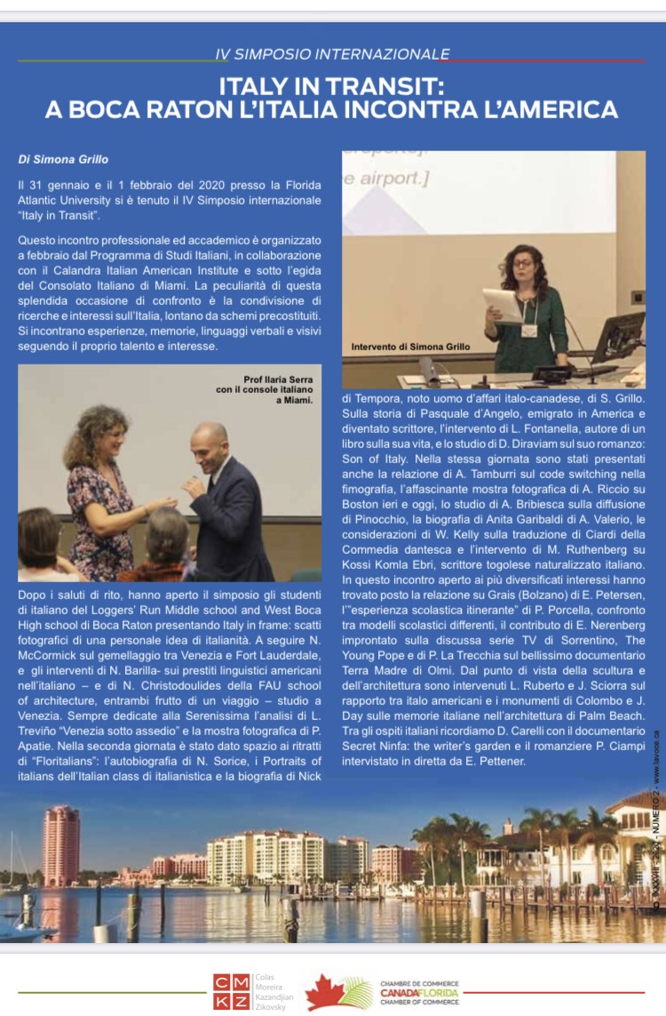 An annual professional and academic meeting held in Boca Raton in winter (the best time to be in Florida). Guests share their research about Italy seen as a fluid space where identities cross and new encounters are shaped.