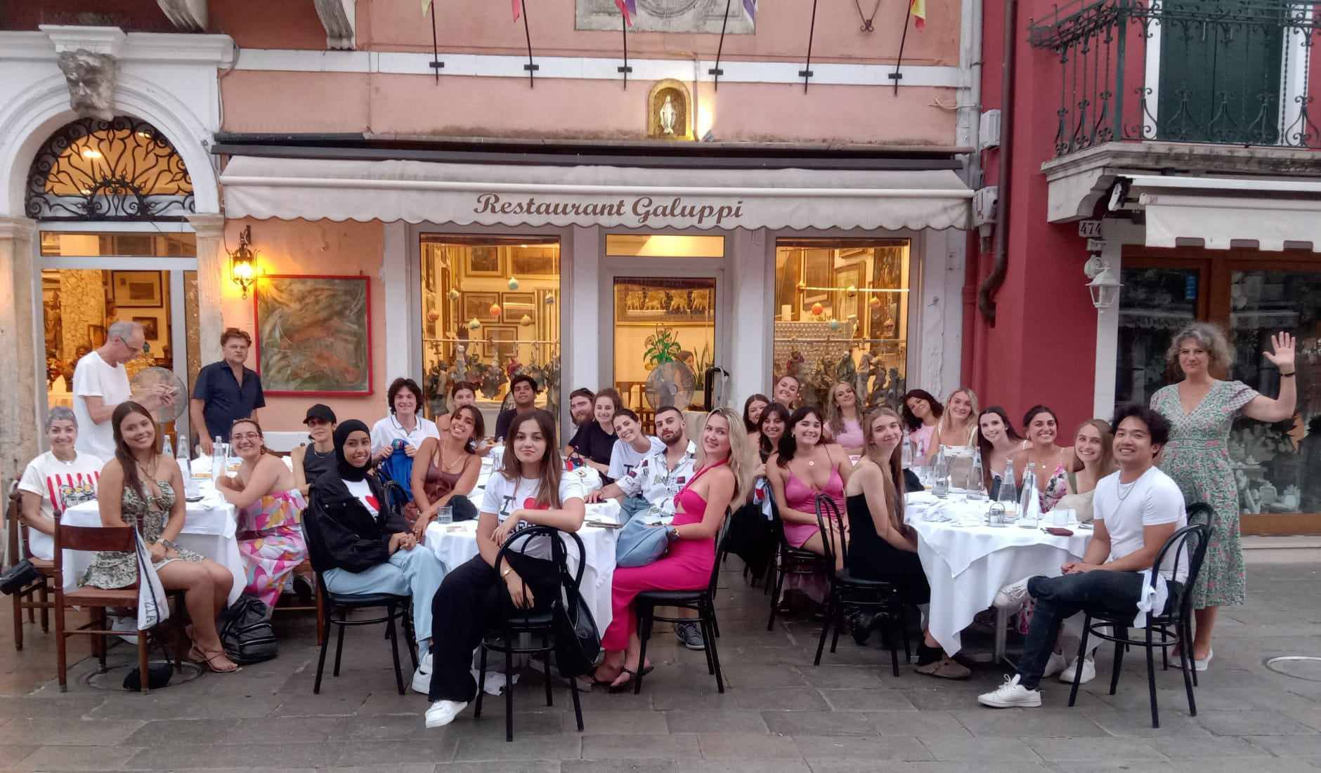 Our program is also unique. Classes are structured around visits to the city landmarks and participation to many activities such as baking buranei in Burano to crafting traditional masks, from visiting artistic glass factories and wineries to attending opera performances, and participating in volunteering events with local associations. Lessons are enriched with guest lectures by Venetian artists, actors, writers (even in their own homes), filmmakers and film critics (with classes held at La Fabbrica del Vedere).