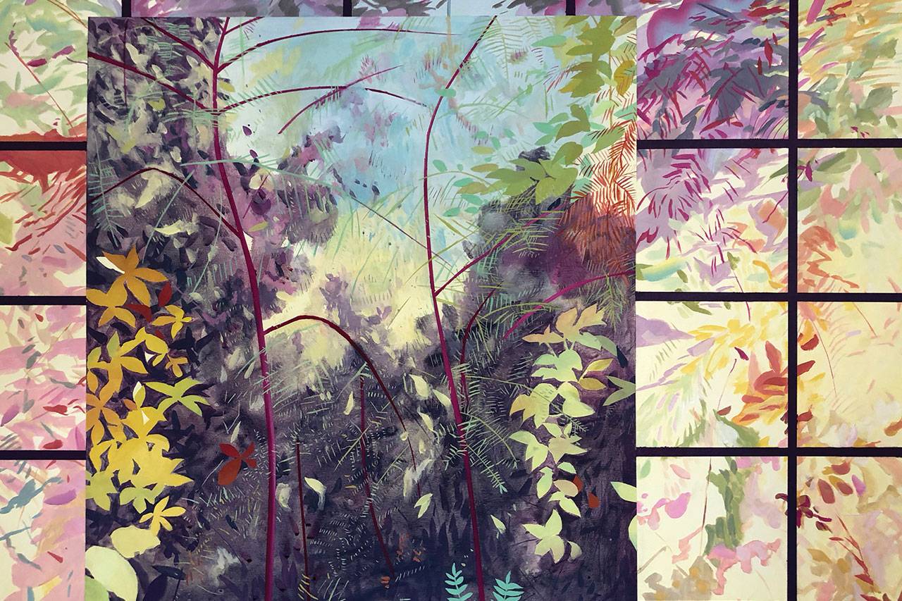 Image: Harumi Abe, Pine Island, 2018, gouache and acrylic on canvas, 36 x 48." Featured in Why Shouldn't We Talk About These Things at the Table?: A Community Based Conversation With South Florida Artists exhibition