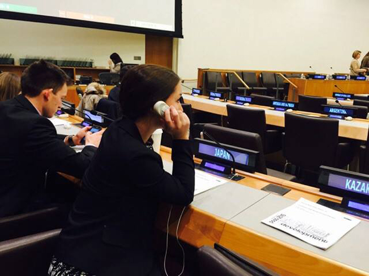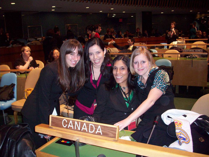 Liana Nealon , Leslie Salas, Ana Vidal and Heather MacKenzie representing Canada on the General Assembly floor. -