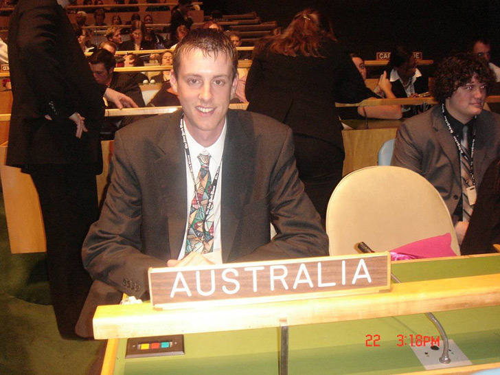 Dustin Mitchell representing Australia in the UN General Assembly Grand Hall. -