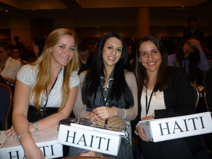 Jenna Lefler, Nicole Mauceri and Karina Brennan representing Haiti. -