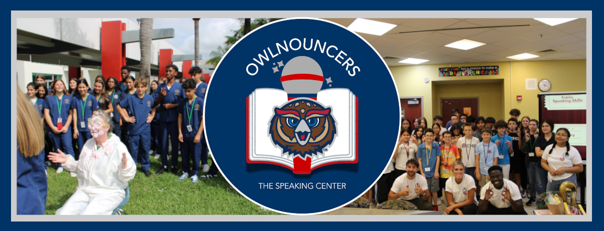 We are Owlnouncers and we are dedicated to teaching public speaking to students through the exciting world of readers theater! We strive to teach creativity, leadership, and self confidence to elementary school students, giving them the confidence and tools for their Future!