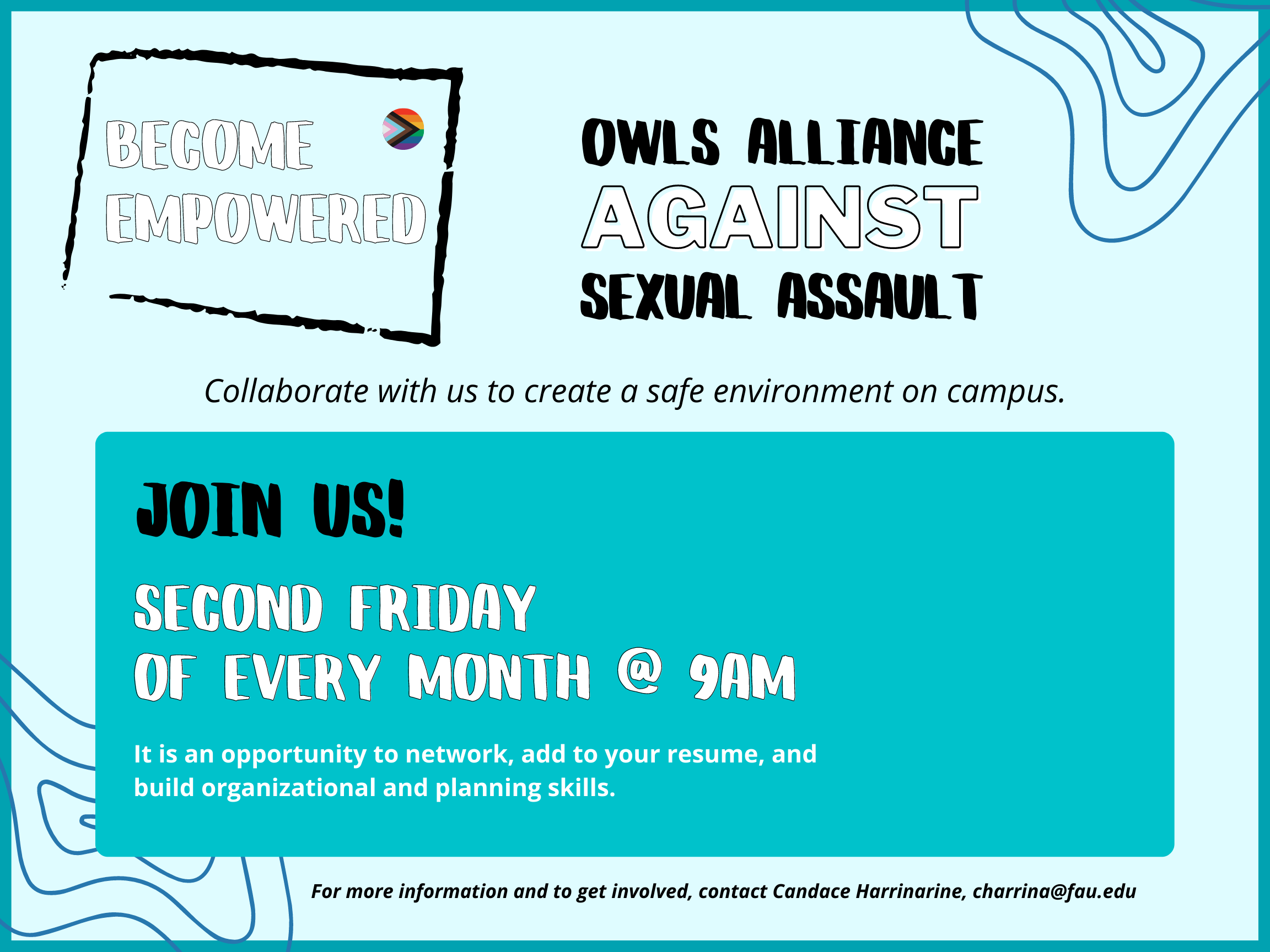 If you are looking for more information to get involved as a volunteer, host an event or more, please contact victimservices@fau.edu. If you are hosting or participating in any event, do not forget to post on social media and use the hashtag #owlsgopurple.