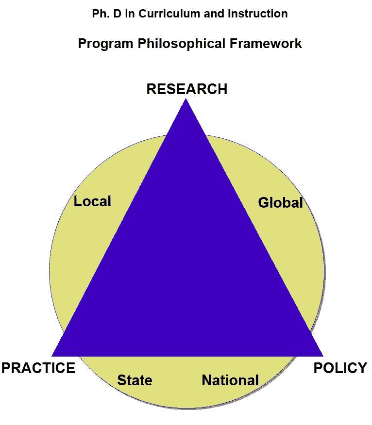 The Ph.D. in Curriculum and Instruction addresses core curriculum in three distinct arenas of the education field: Research, Practice, and Policy. In all three arenas, doctoral students are expected to be:
