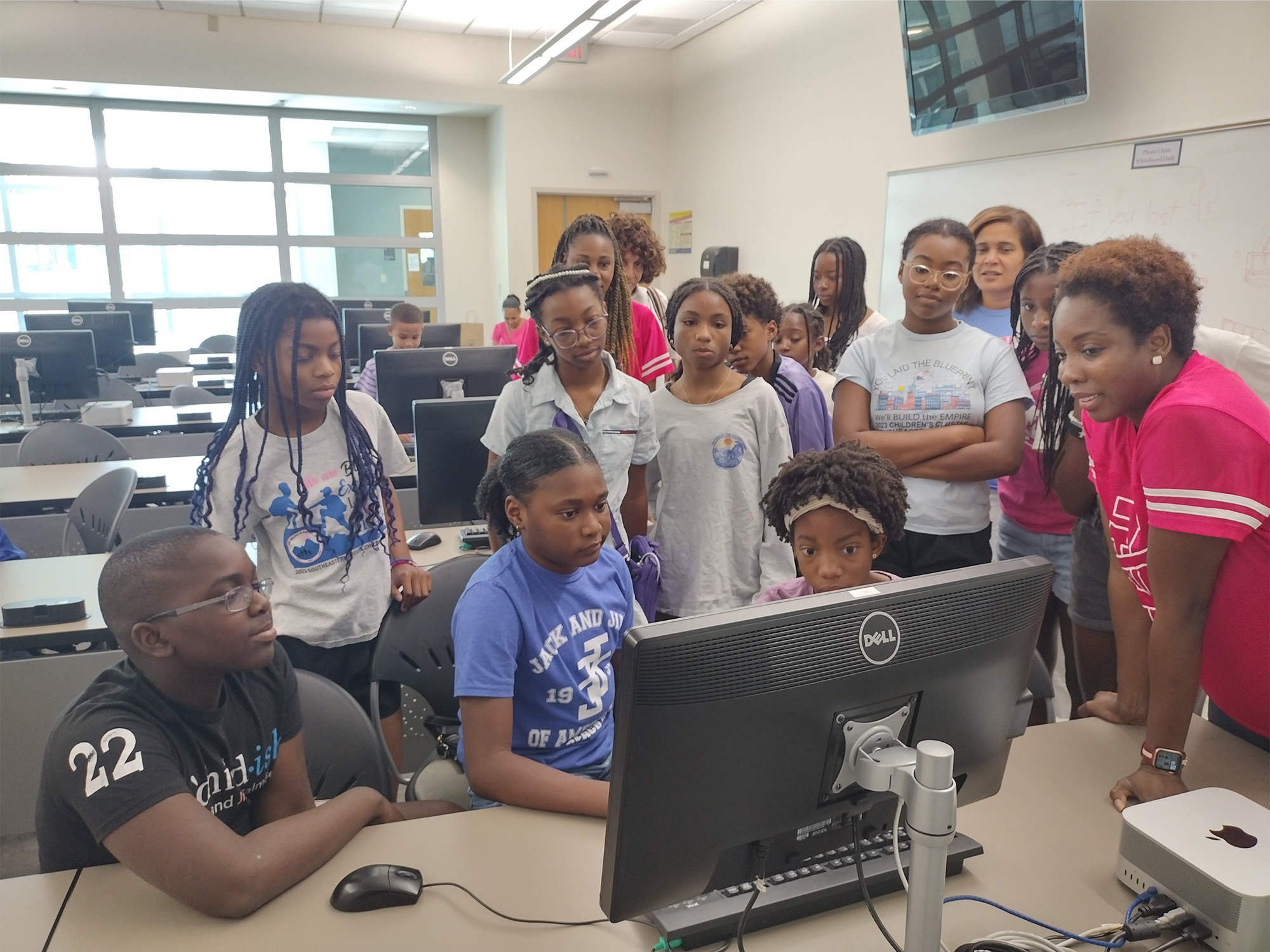 Jack & Jill of America, Inc., an organization focused on exposing and unifying African-American children to leadership experiences, collaborated with the College of Engineering and Computer Science for their "Full STEAM Ahead" event. Approximately 30 children participated, gaining insights into rocket engineering from Nicole Cummings, FAU's 2023 Hall of Fame Inductee, and creating animated AI images under the guidance of FAU AI graduate student Melanie Roger. .