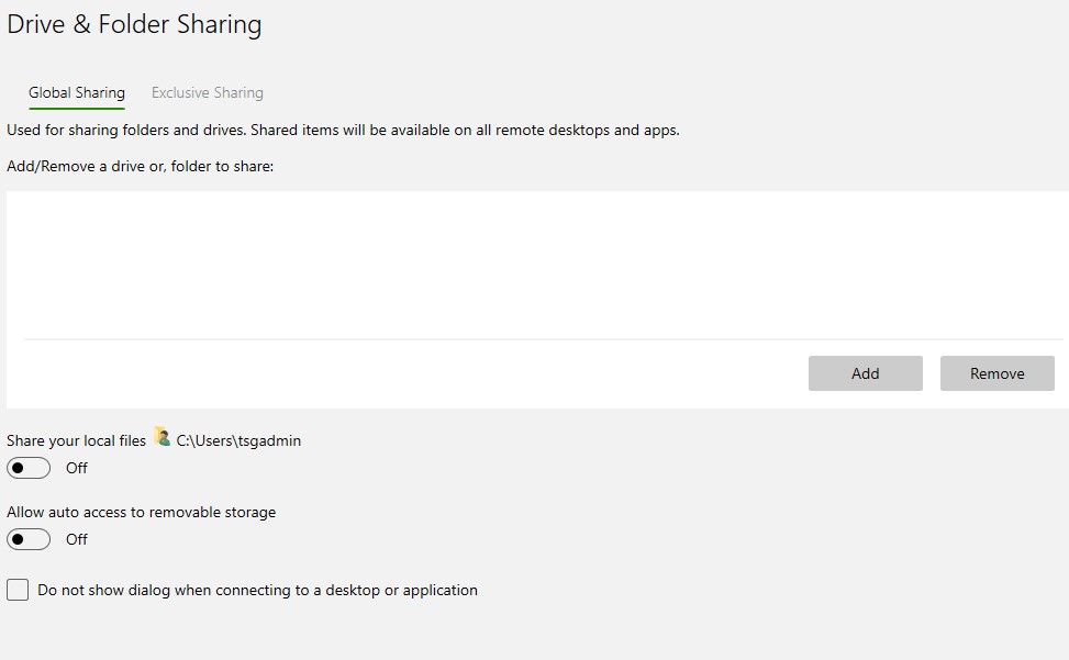 - Upon starting Omnissa, you may see the following "Drive Sharing" dialog (as shown below):