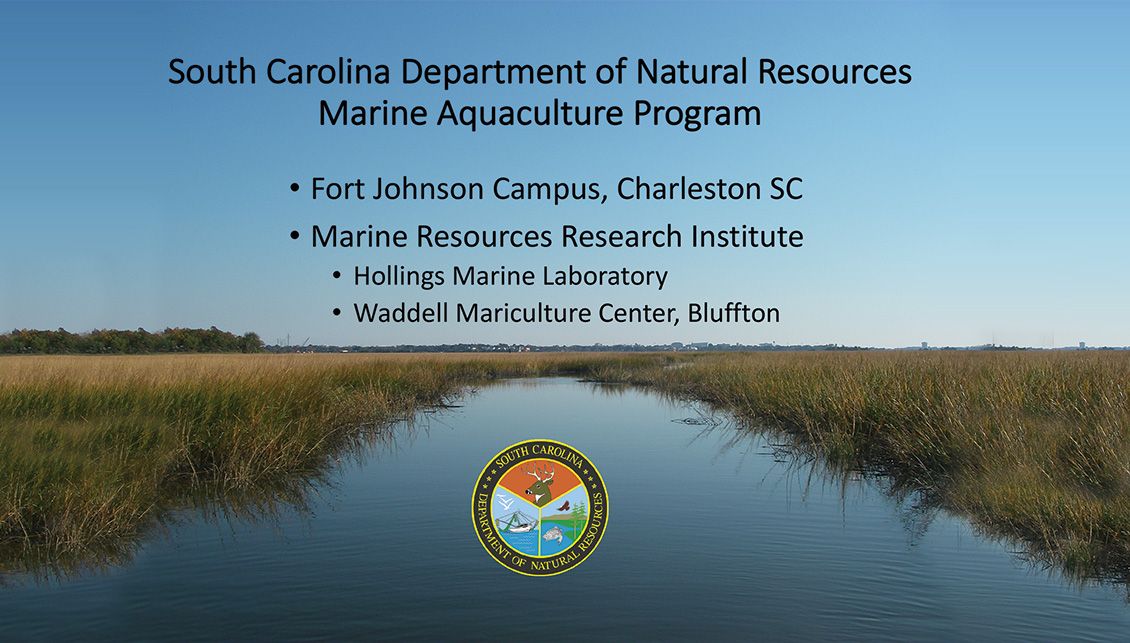 This special session was hosted and organized by Florida Atlantic University Harbor Branch Oceanographic Institute, USDA Agricultural Research Service, NOAA Fisheries Aquaculture, University of Southern Mississippi Thad Cochran Marine Aquaculture Center, South Carolina Department of Natural Resources, and National Aquaculture Association.
