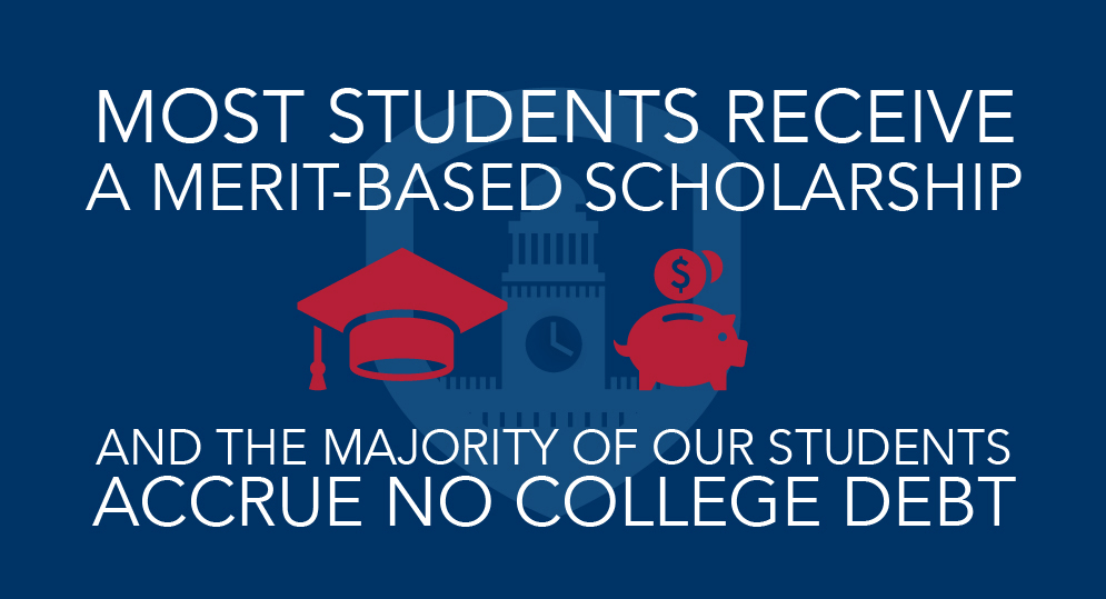 VALUE: All students accepted to the Wilkes Honors College and seeking their first baccalaureate degree receive merit-based scholarships, and many students receive need-based aid. The majority of our students graduate with zero college debt, and the average for others is $10K less than the national average for public universities, and much less than the average for private colleges.