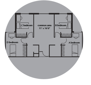 Residential Education is a central part of the Honors College experience: building leadership skills, promoting team work, and fostering cross-cultural understanding. Students live in individual bedrooms in furnished suite-style residence halls with Wi-Fi and cable. By having both a private bedroom and shared common areas, students enjoy a flexible social life and a variety of venues to study.