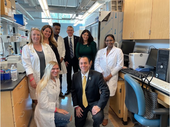 Lab members with the Live Like Bella Foundation Board who awarded the lab a grant through the Florida Department of Health to study chemotherapy resistance in leukemia.