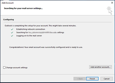 . - Outlook setup is complete. Your email should start to come into your Outlook inbox.
