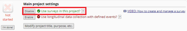 - In your REDCap Project, be sure to have enabled the project to have surveys.