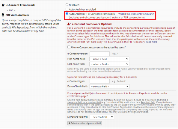 - e-Consent Version - Allows participants to keep track of which version of consent form. The number must be updated manually.