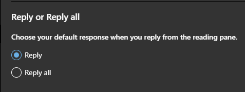 - Scroll down to the "Reply or Reply all" section and change to Reply.
