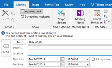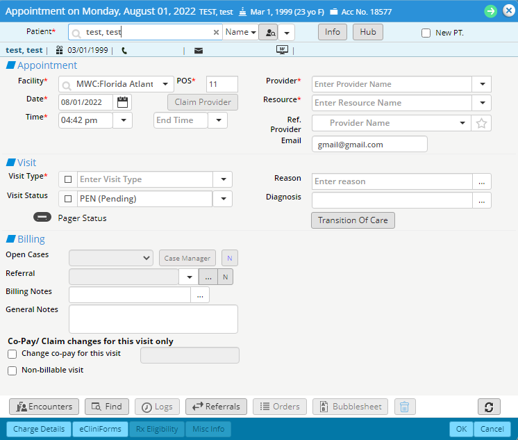 - Fill out the rest of the appointment information as normally and click “Ok”