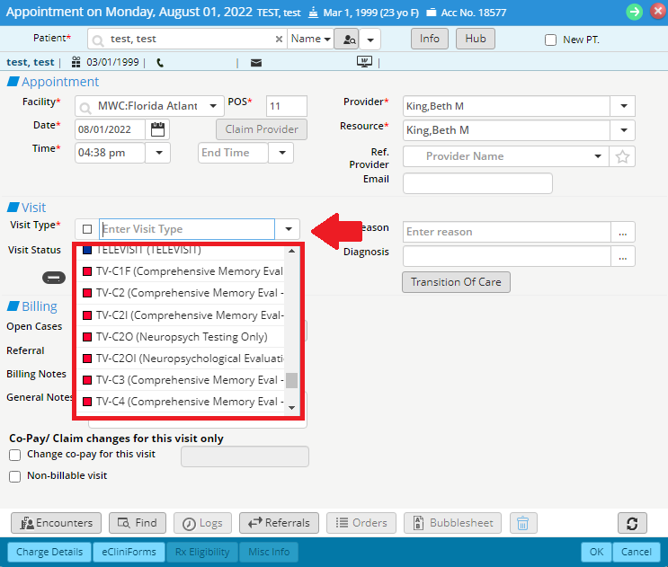 - Assign a Provider and Resource then for Visit Type please choose the corresponding visit types: