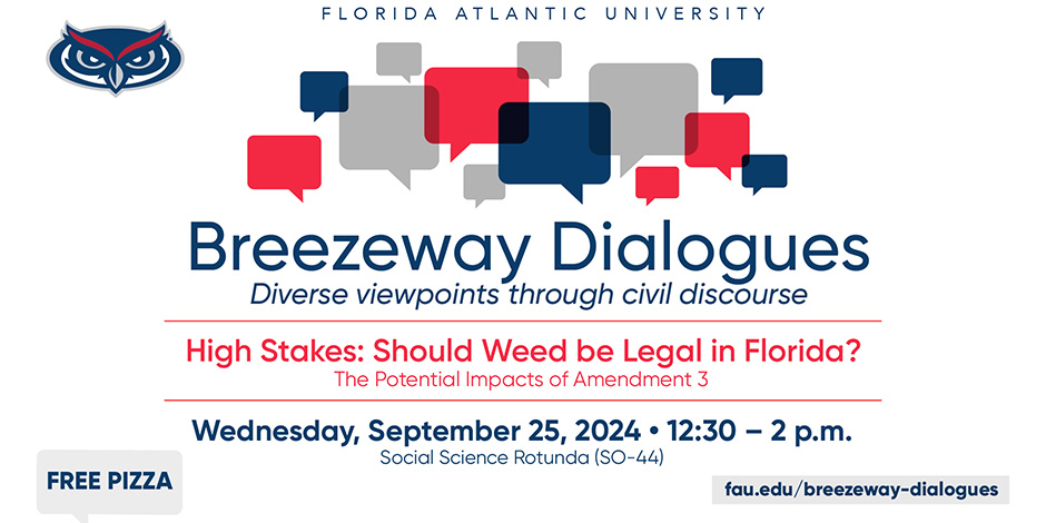 This dialogue explored the issue of cannabis legalization in Florida. Faculty and students discussed the potential impacts of Amendment 3, which proposes to legalize marijuana for adults 21 and older.