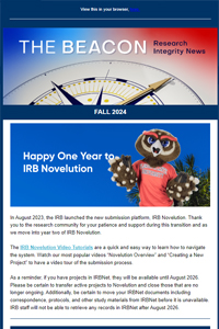 The Research Integrity newsletter, Beacon, is a quick glance at recent news and upcoming events. The Beacon newsletter provides all the news on policy updates, upcoming workshops and new members to our team.