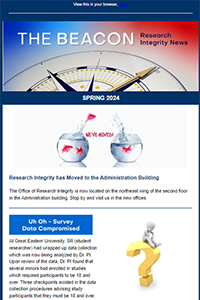 If you would like to subscribe to the Research Integrity newsletter, The Beacon, please fill out the following form.