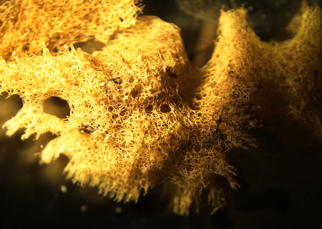 Sponges are crucial for maintaining life in aquatic ecosystems. They act as natural filters of the water, as well as food and habitat sources. To conserve these sponges in their natural environments, it is vital to have a total understanding of their life cycle. Unfortunately, there is not much research done on sponge reproduction and survival of larvae once spawned. This image is in line with my research to further investigate sponge reproduction. To determine the species being worked with, cuttings were taken from samples collected in the Florida Keys. These cuttings were air-dried and examined under a stereo microscope to produce images such as this one. This image is of Spongia cheiris, or a glove sponge, and shows its species-specific complex internal network that aids in its identification. This research is a part of a larger land-based nursery project, based at the FAU Harbor Branch Oceanographic Institute's Laboratory of Integrative Marine and Coastal Ecology.