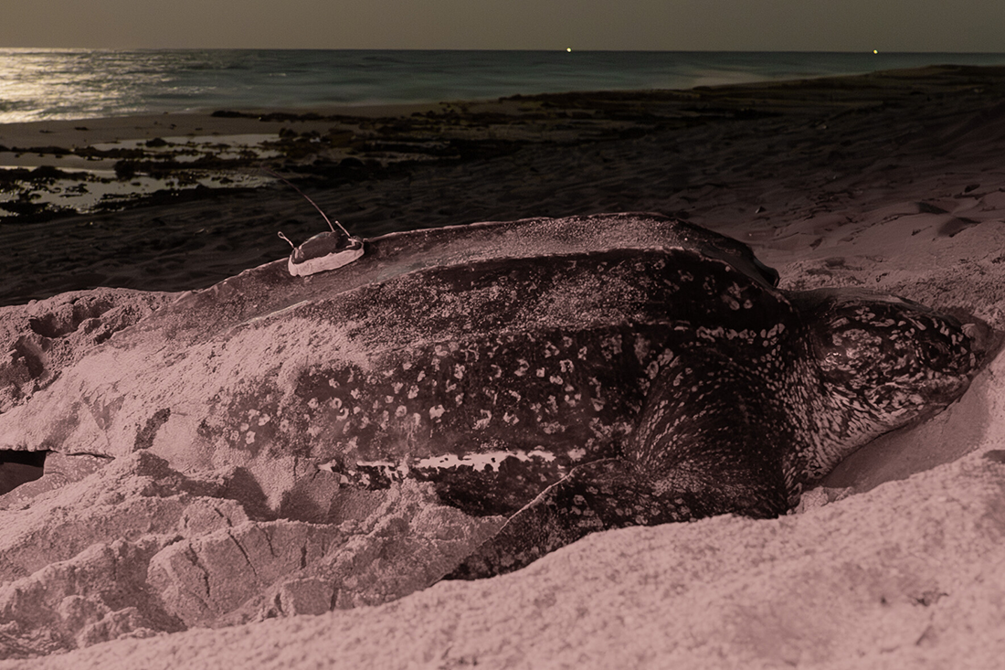 Southeastern Florida is home to a growing nesting aggregation of leatherback sea turtles, the largest species of sea turtles in the world. Leatherbacks return to nesting beaches every one to three years, laying seven to 10 nests per nesting season. Once the last nest has been laid, turtles embark on long distance migrations to foraging grounds located as far north as eastern Canada. Deploying satellite transmitters on nesting turtles allow researchers to monitor their movements after departing nesting beaches in order to identify high-use habitats, track migration patterns, and investigate environmental influences on sea turtle behavior.