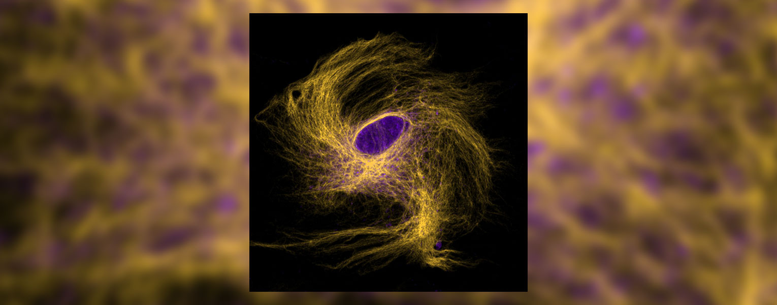 One way to do that, he said, is to take cells from the mouse brain tissue, fix the tissue to a piece of glass, then stain it with fluorescent antibodies and examine it under a microscope. By staining the slide, the researchers can visualize different parts of the cell, their shape, size — called morphology — and health as well as the protein responsible for making the gene of interest. In his winning image, stained yellow is the inner, supportive skeleton of the cell and the nucleus, where DNA is located, is stained purple, Rodriguez said.