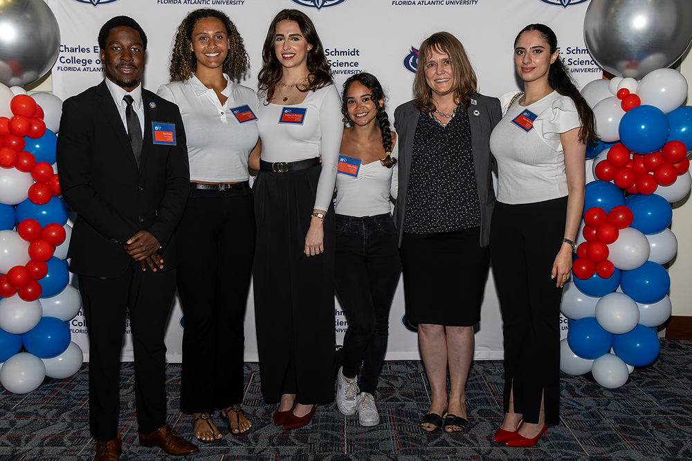 Dean Valery Forbes, Ph.D., welcomed students’ family and friends to the event, along with Florida Atlantic President Emeritus John Kelly, Ph.D., and members from the Florida Atlantic Office of Undergraduate Admissions, the Schmidt College of Medicine and the Schmidt College of Science’s Pre-Health Professions Office. Along with dinner and refreshments, guests enjoyed remarks from the college’s leadership team.