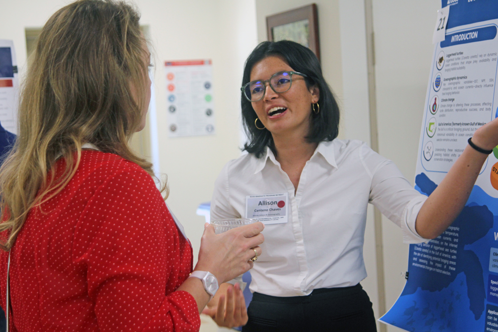 More than 80 faculty members, graduate students and staff from the Charles E. Schmidt College of Science and Harbor Branch Oceanographic Institute’s School of Environmental, Coastal, and Ocean Sustainability (ECOS) attended a special retreat on April 14. ECOS members gathered at Florida Atlantic’s Pine Jog Environmental Education Center in West Palm Beach for a day that featured a science communication session; a keynote lecture by Nick Aumen, Ph.D., U.S. Geological Survey, Greater Everglades Priority Ecosystem Science Program; networking opportunities and a poster competition that showcased the research of 23 students.